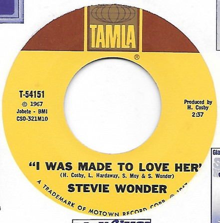 Stevie Wonder ‎– I Was Made To Love Her / Hold Me (Tamla ‎– T-54151, 7", single, 45 rpm, USA, 1967).