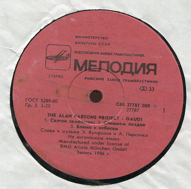 The Alan Parsons Project - Gaudi C60 27787_88 USSR_Germany