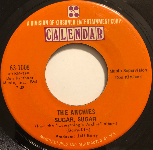The Archies – Sugar, Sugar / Melody Hill (Calendar – 63-1008, 7", single, USA, 1969).