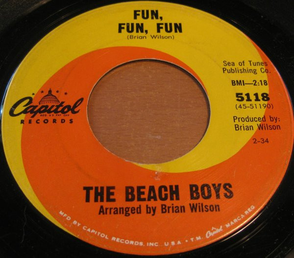 The Beach Boys – Fun, Fun, Fun / Why Do Fools Fall In Love (Capitol Records – 5118, 7", 45 rpm, single, Los Angeles pressing, USA, 1964).