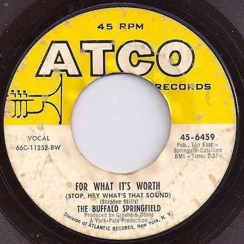 The Buffalo Springfield – For What It's Worth (Stop, Hey What's That Sound) / Do I Have To Come Right Out And Say It (ATCO Records – 45-6459, 7", 45 rpm, single, styrene, Bestway pressing, Rim text Atlantic, USA, 1966).