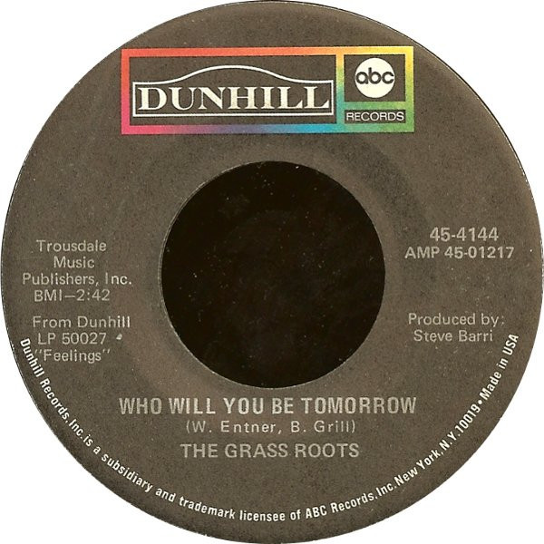 The Grass Roots ‎– Midnight Confessions / Who Will You Be Tomorrow (Dunhill ‎/ ABC Records ‎– 45-D-4144, 7", 45 rpm, single, USA, 1968).