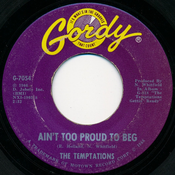 The Temptations – Ain't Too Proud To Beg / You'll Lose A Precious Love (Gordy – 7054, 7", 45 rpm, single, USA, 1966).