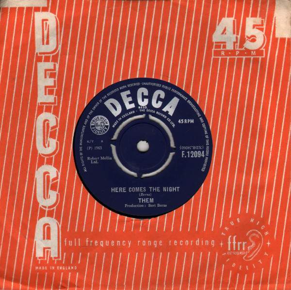 Them – Here Comes The Night / All For Myself (Decca – F.12094, 7", single, 45 rpm, UK, 1965).