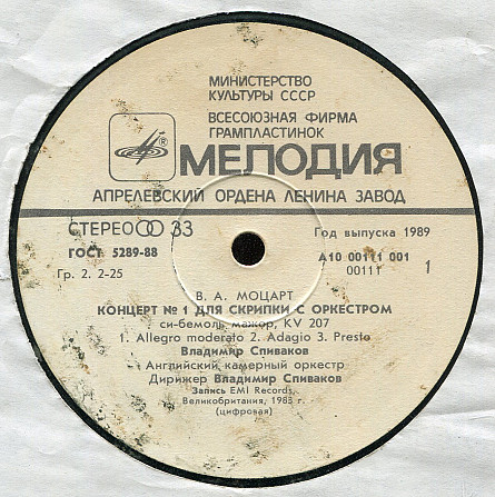 В. А. Моцарт - Концерт №1 для скрипки с оркестр. В. Спиваков А10 00111_12 USSR_England 1989