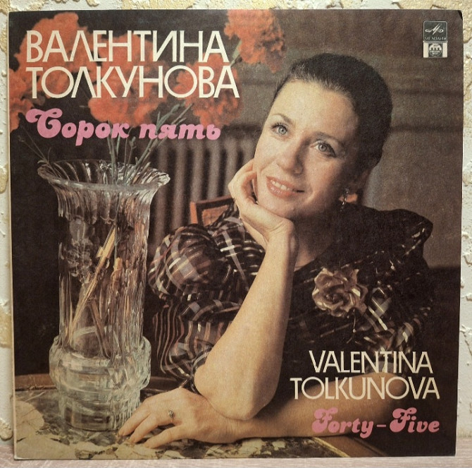 Вінілова платівка. Дев,ятий, ювілейний, студійний, каталожний альбом, російської (радянської) естрадноїї виконавиці, Валентини Толкунової (Сорок Пять) 1991. Випуск фірми (Russian Disc) Russia, 1992-ий рік. Оригінальне, першопресове видання. Лімітований тираж (Limited Edition). Рідкісне (Rare). Стан платівки ЕХ+. Стан конверту ЕХ+. Відправка по Україні службами доставки: Нова Пошта, Укр Пошта, Делівері. Також відправляємо посилки за кордон по цілому світу.