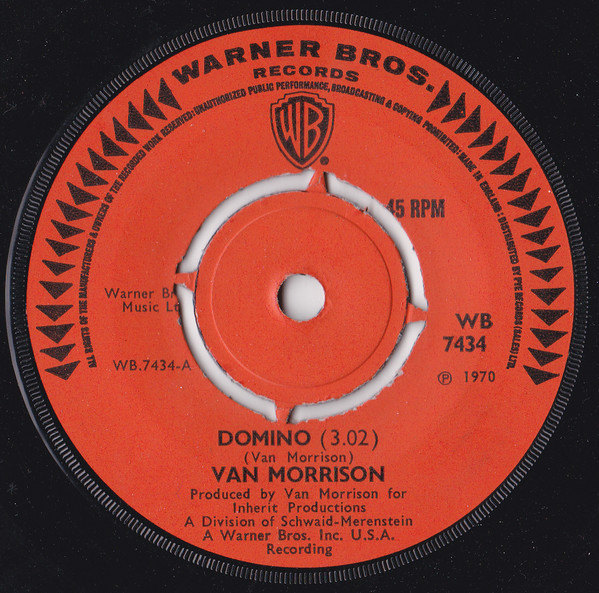 Van Morrison – Domino / Sweet Jannie (Warner Bros. Records – WB 7434, 7", 45 rpm, single, UK, 1970).