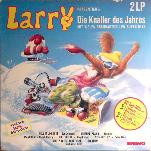 Конкретно «Larry präsentiert: Die Knaller des Jahres» (1989, 2LP) — концентрат того, что в Советском Союзе в годы распада особенно любили и старательно переписывали на кассеты: Kaoma «Lambada», Liza Minnelli «Losing My Mind» в продакшене Pet Shop Boys, Mike Oldfield «Innocent», The Bangles «Eternal Flame». Для советского уха это был идеальный «запад»: драматичная Лайза Миннелли на фоне синти‑попа Pet Shop Boys, поп‑звезда Майк Олдфилд конца 80‑х, чуткий радиопоп вроде Bangles — всё то, что звучало как музыка «из другого мира».