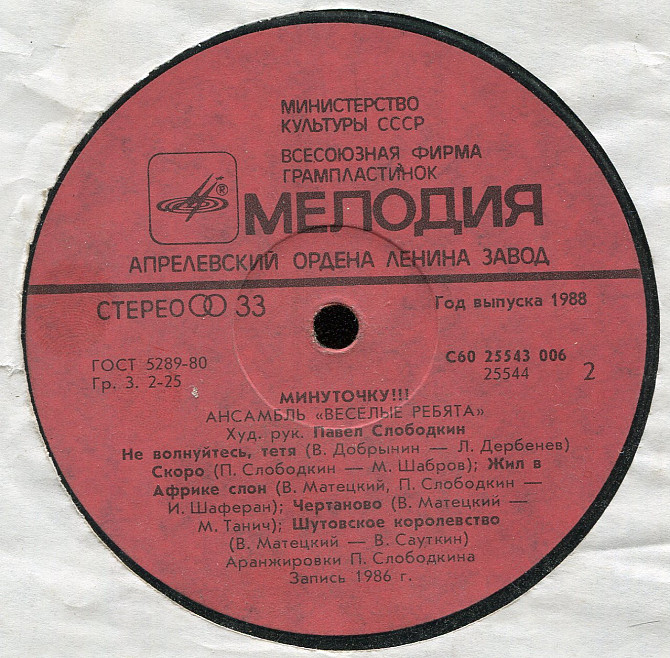 Веселые ребята - Минуточку С60 25543_44 USSR 1988