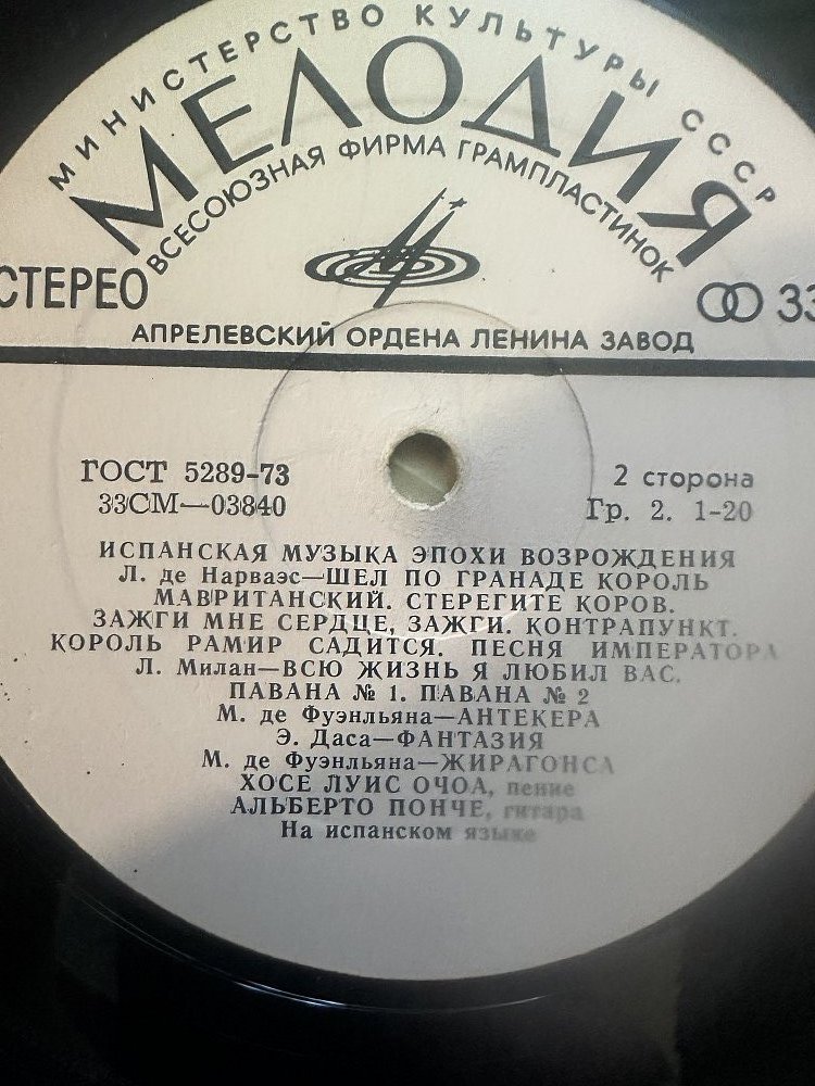 Виниловая пластинка-Испанская музыка эпохи возрождения.Состояние отличное.Практически не слушалась.Не мыта.