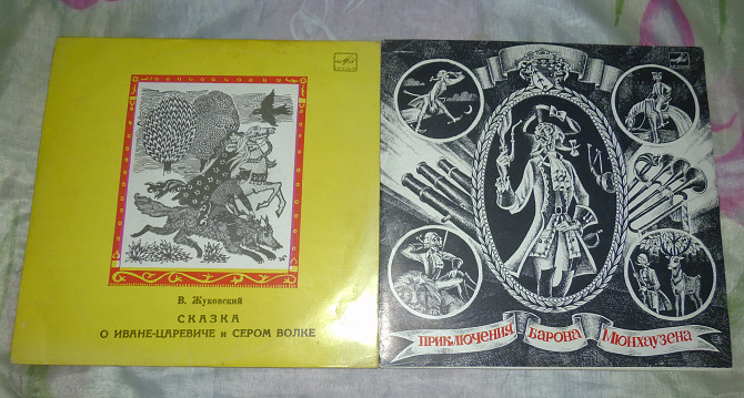 Виниловые пластинки (гранд - средние) сказки "О Иване-царевиче и сером волке","Приключения барона Мюнхаузена".Без царапин и сколов."Царевич..."-20,"Мюнхаузен..."-80.