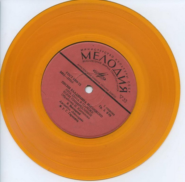 ВЛАДИМИР ВЫСОЦКИЙ 7'' «Песни Владимира Высоцкого (Она Была В Париже)» • Generic/EX+ Orange vinyl • USSR • Мелодия